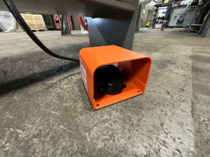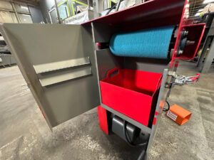 A removable dust tray helps collect debris, keeping the work area cleaner, while removable front and end belt guards let operators finish a wide variety of part sizes and shapes. The heavy-duty frame is built from 0.375" plate steel for maximum stability, and the covered foot switch provides safe, hands-free operation.