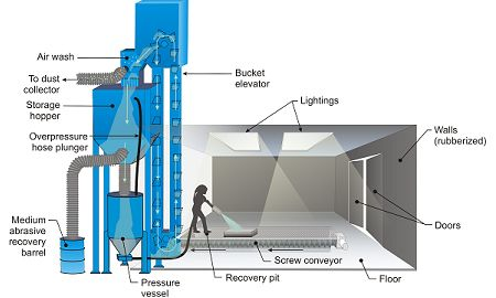 - Ensure the blast room is large enough to accommodate the largest workpiece with sufficient space for operators to move around safely.