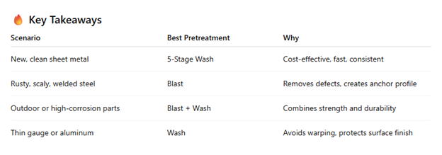 Walk into ten powder coating shops, and you’ll probably hear ten different philosophies about surface prep. Some swear by a good five-stage wash line. Others won’t start a part until it’s been blasted to a white-metal finish.